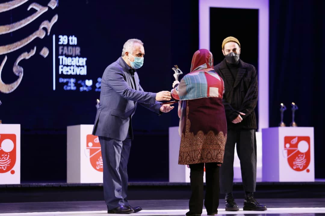 در ادامه حسین مسافر آستانه، سید عباس صالحی و مجبتی حسینی برای پاسداشت مقام هنری همایون علیآبادی نویسنده و منتقد تئاتر، جمشید داورپناه نویسنده و کارگردان تئاتر، اختر تاجیک عکاس و بهرام ابراهیمی بازیگر روی صحنه آمدند و از این هنرمندان با اهدای جوایزی تقدیر کردند.
