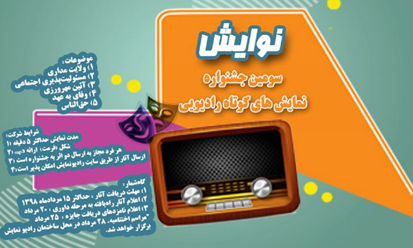رادیونمایش به مناسبت دهه ولایت سومین جشنواره نمایش های کوتاه رادیویی را با نام «نوایش» برگزار می کند.