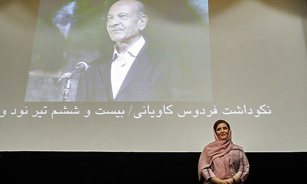 وی متن لوح تقدیر انجمن بازیگران سینمای ایران را برای مخاطبان قرائت و سپس آن را به دختر کاویانی اهدا کرد.